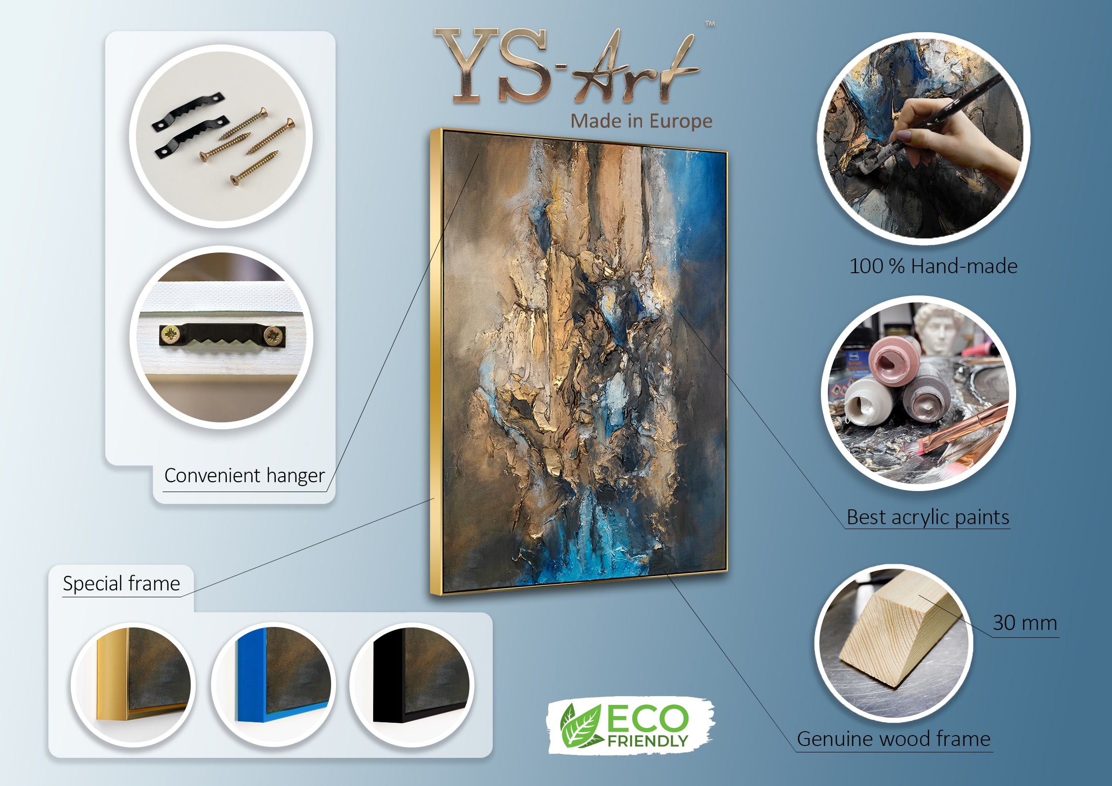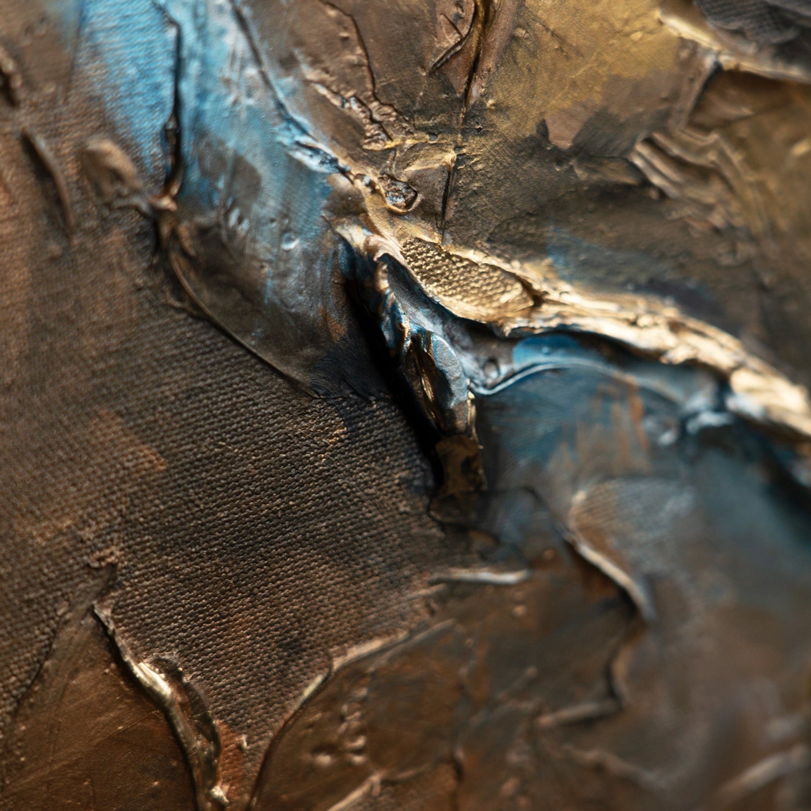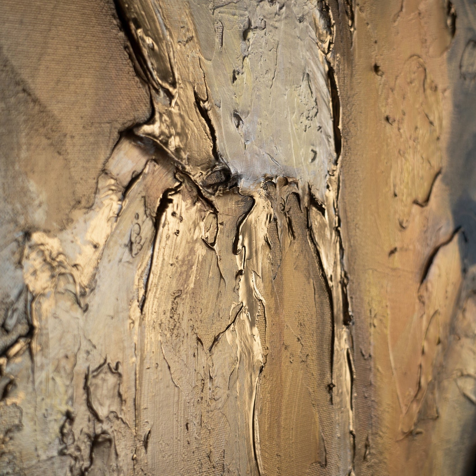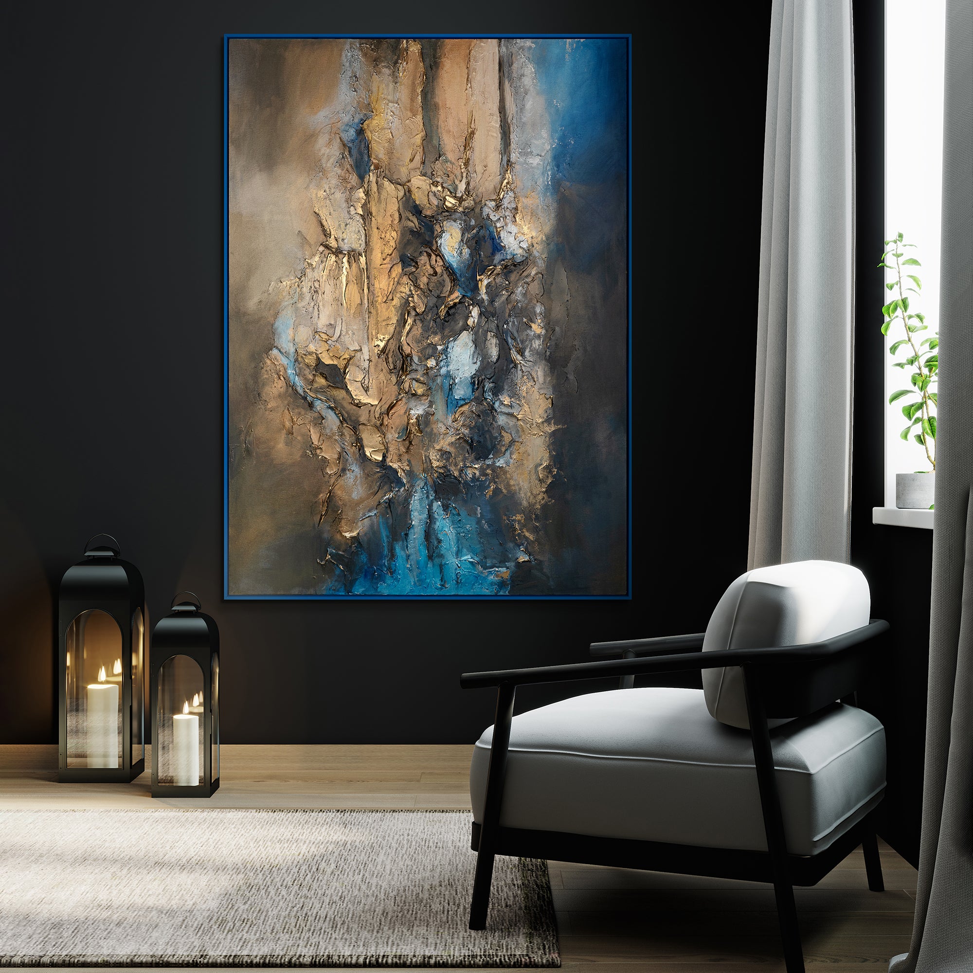 Tauchen Sie ein in die Welt der modernen Abstraktion mit diesem exquisiten, handgemalten Kunstwerk, das jedem Raum einen Hauch von Luxus verleiht. Dieses einzigartige Kunstwerk wurde mit Leidenschaft und Präzision gefertigt und zeichnet sich durch ein abstraktes Design mit eleganten Goldakzenten aus, die schimmern und das Licht einfangen, wodurch ein dynamischer visueller Effekt entsteht. Das Bild ist wunderschön gerahmt und misst großzügige 120x80, 140x100 oder 180x120 cm und ist damit das perfekte Statement-Kunstwerk für Ihr Wohnzimmer, Büro oder Schlafzimmer. Die Mischung aus kräftigen Strichen und subtilen Farbtönen sorgt dafür, dass es zu einer Vielzahl von Inneneinrichtungen passt.