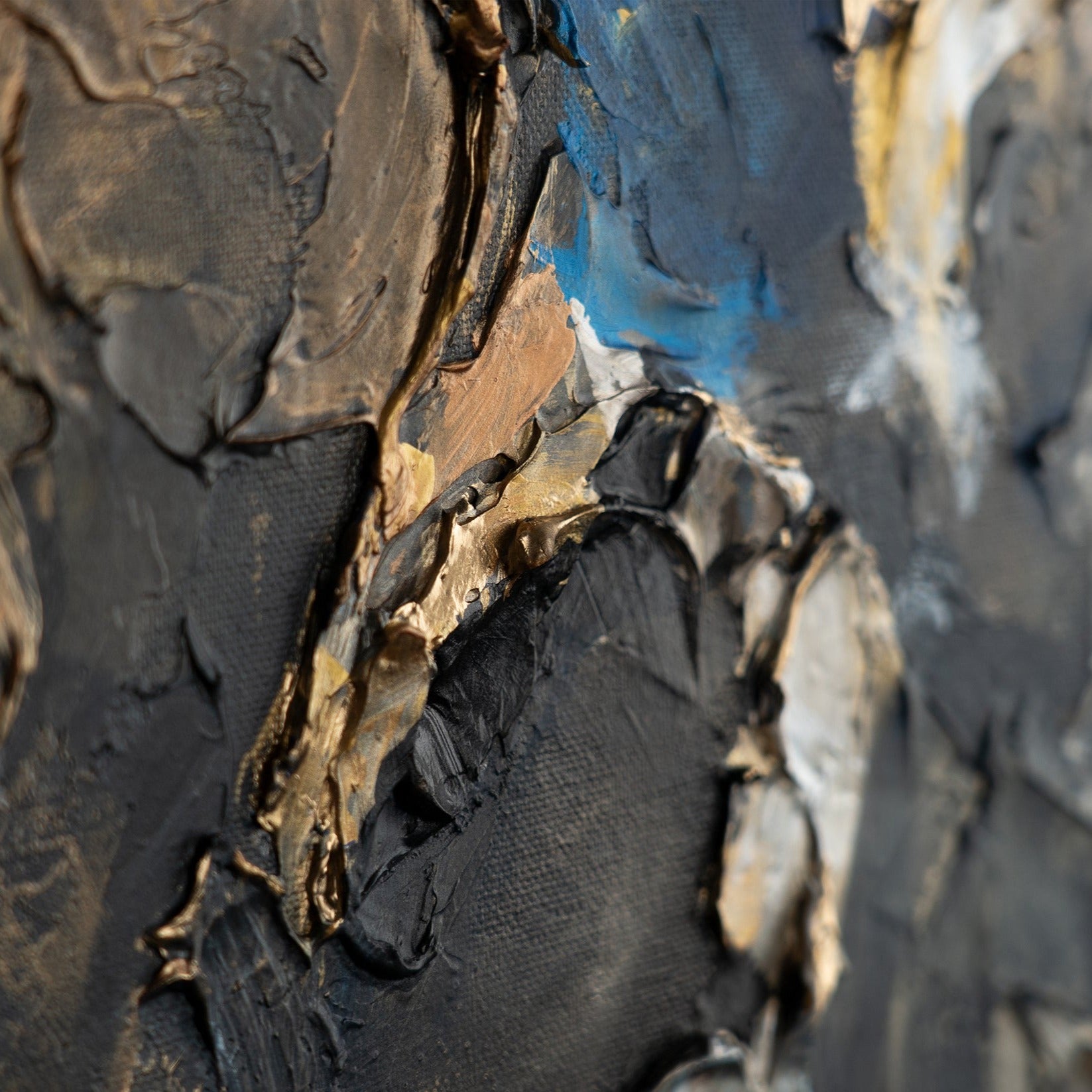 Dieses Gemälde wurde aus den besten Materialien auf einer haltbaren Leinwand geschaffen, die die Lebendigkeit der Farben bewahrt. Der Rahmen wurde sorgfältig an das Kunstwerk angepasst und ist bei Lieferung sofort aufhängbar. Um das beeindruckende Aussehen Ihrer modernen abstrakten Kunst zu erhalten, sollten Sie das Bild vor direktem Sonnenlicht schützen und es vorsichtig mit einem weichen, trockenen Tuch abstauben.
