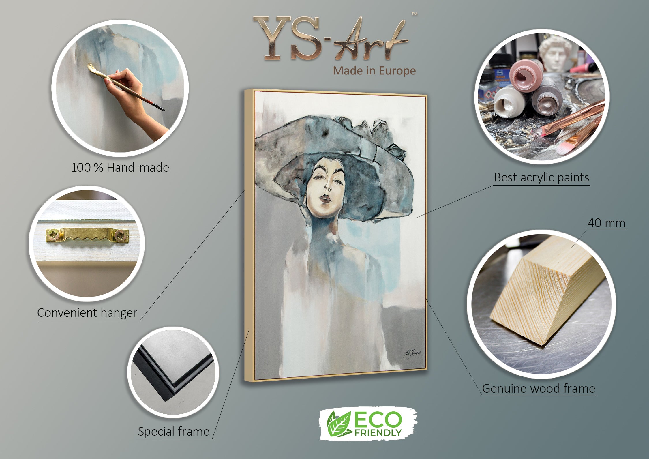 Handgemalte bilder auf leinwand im Rahmen "Bridget"Jedes Acrylgemälde auf Leinwand aus unserer YS Art Premium Serie wird vom Künstler signiert und ein Echtheitszertifikat wird beigelegt. Bei uns wird noch alles noch per Hand gemacht. Vom Anfertigen eines Keilrahmens, über das Spannen der hochwertigen Leinwand, bis hin zum Malen des Gemäldes und natürlich dem sicheren Verpacken.