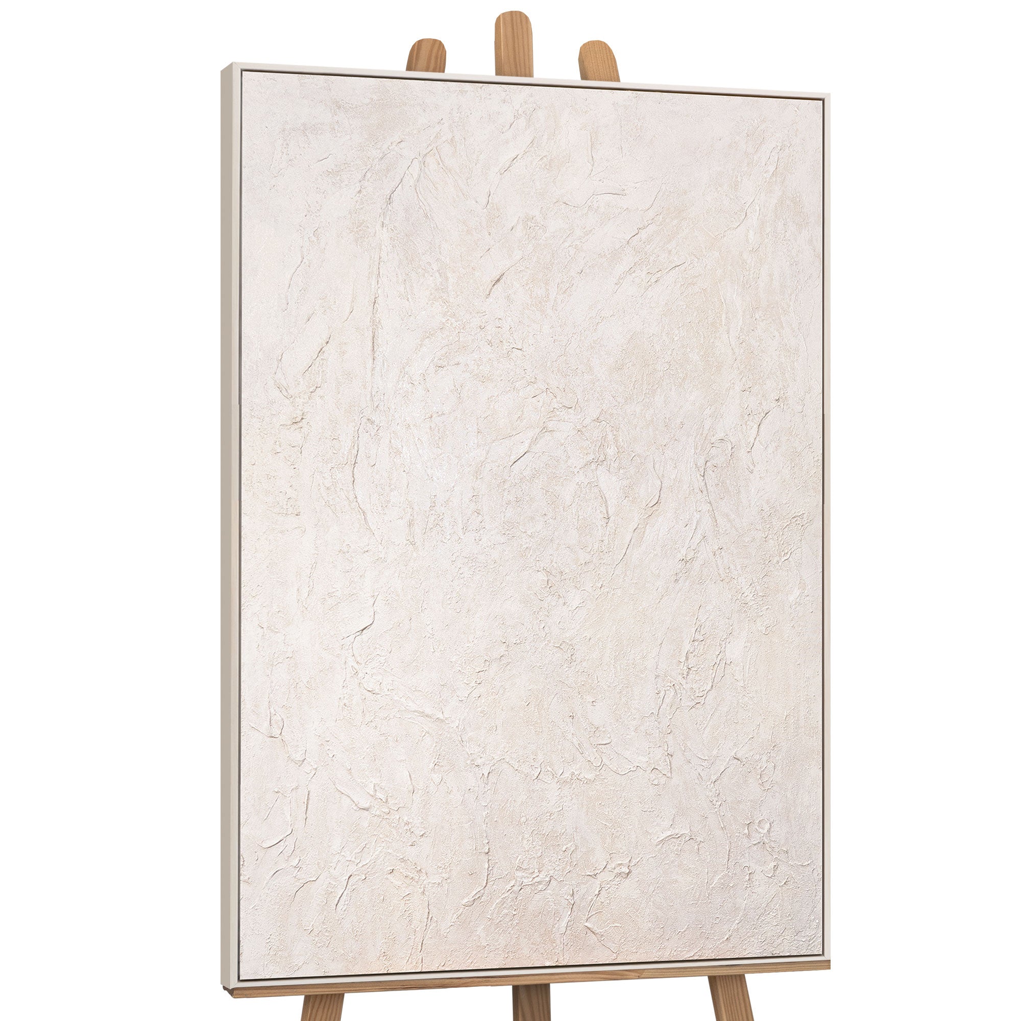 Bringen Sie Harmonie und Eleganz in Ihr Zuhause mit diesem handgefertigten abstrakten Wandbild. Die sanften Beige- und Cremefarben, kombiniert mit feiner Struktur, schaffen eine ruhige und zugleich edle Atmosphäre.