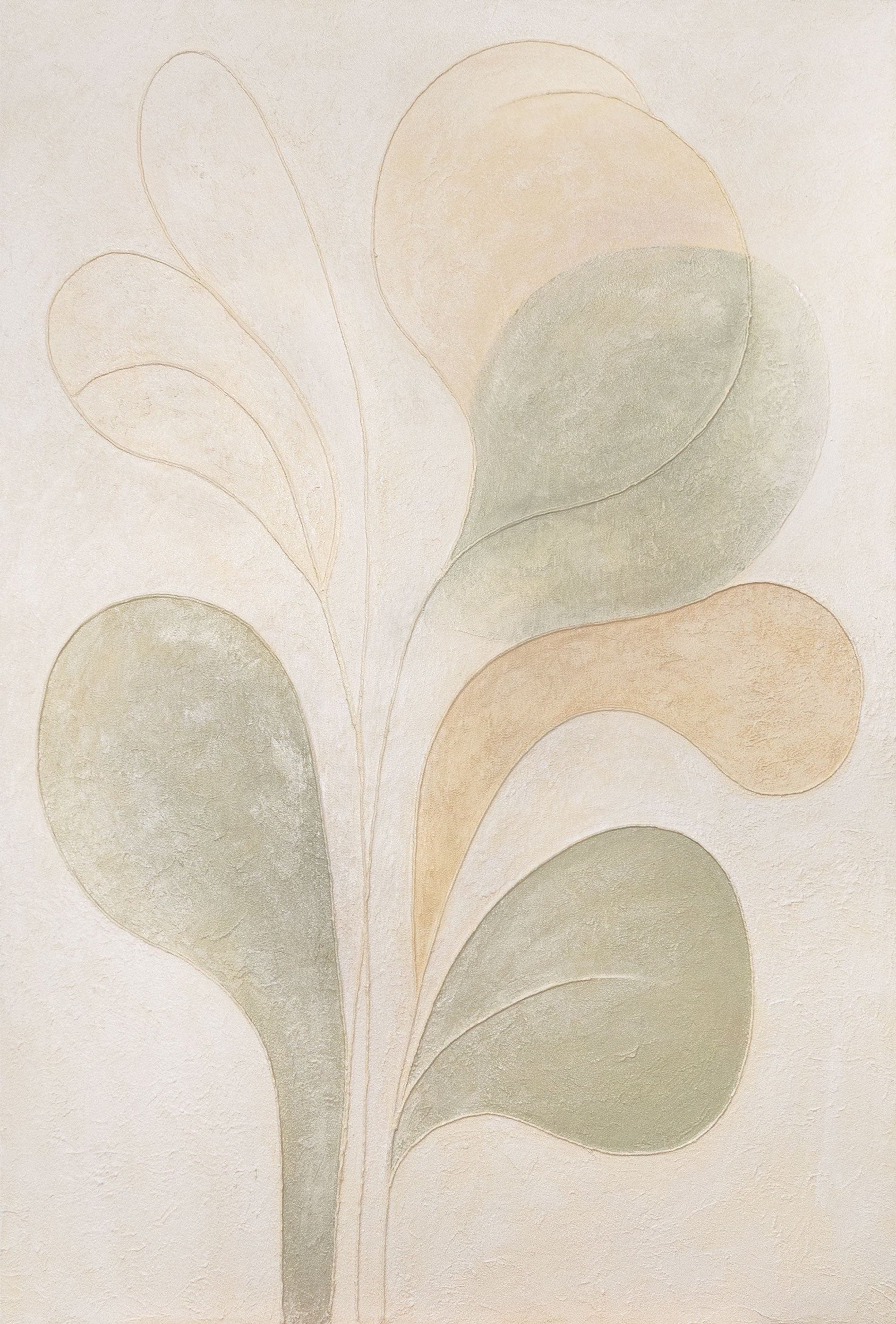 Dieses handgemalte Leinwandbild überzeugt durch seine organischen Formen und die zarten Farbtöne in Beige, Grün und Sand. Mit feiner Struktur gearbeitet, wirkt das Kunstwerk leicht, harmonisch und zugleich elegant – ein Symbol für Ruhe und Natürlichkeit.