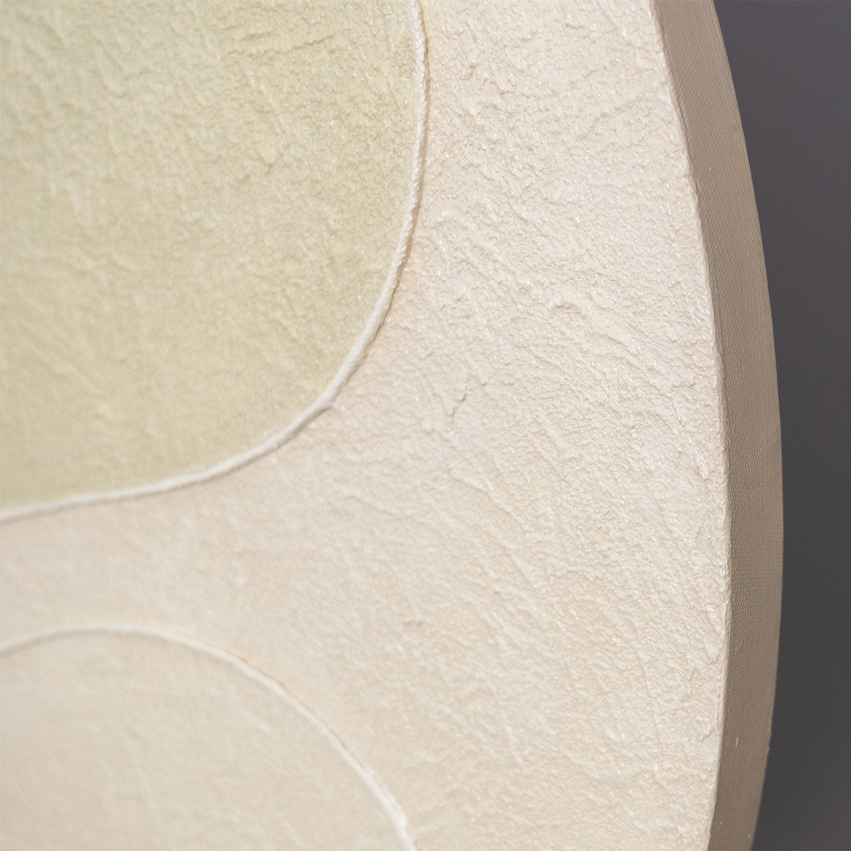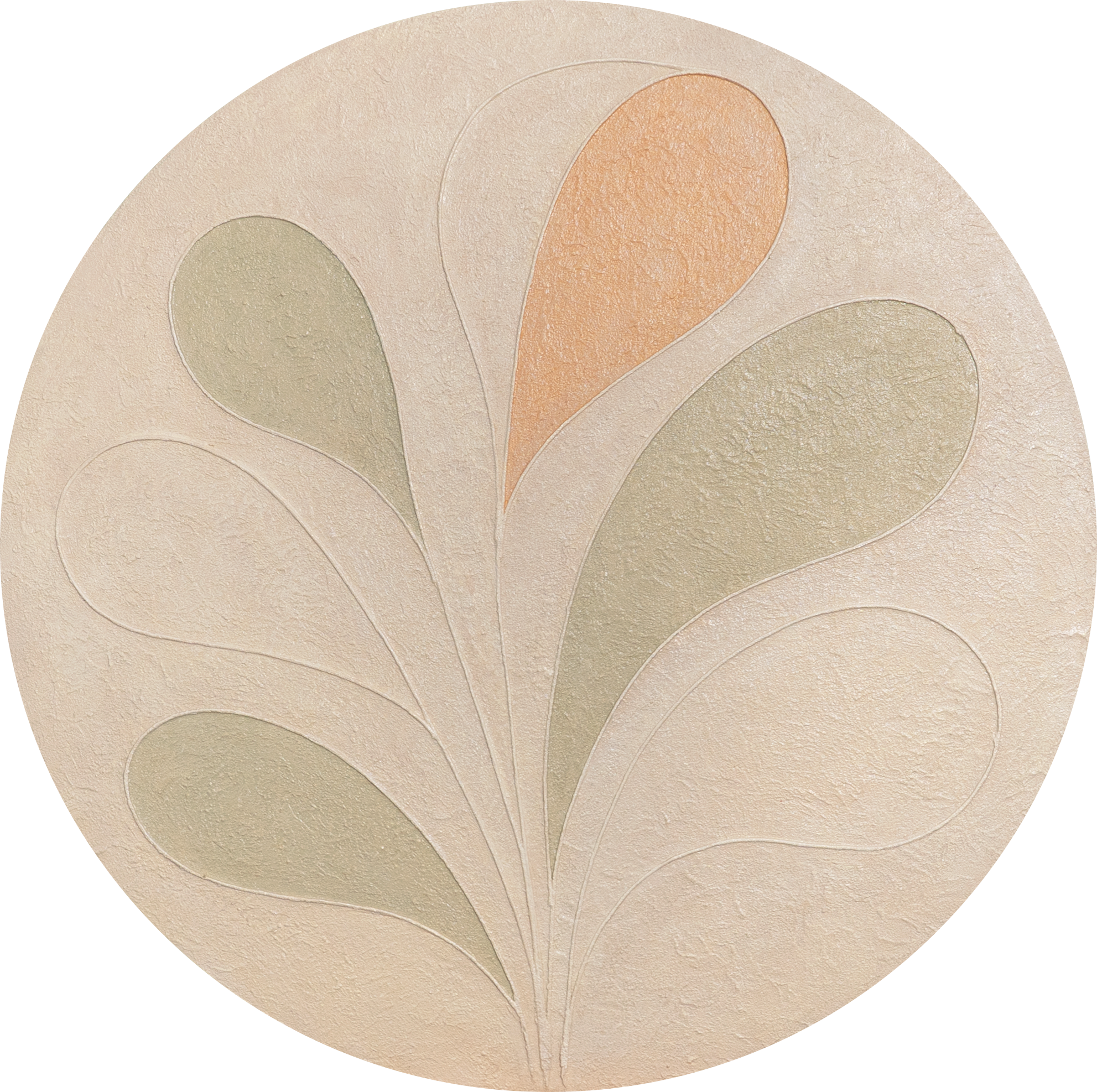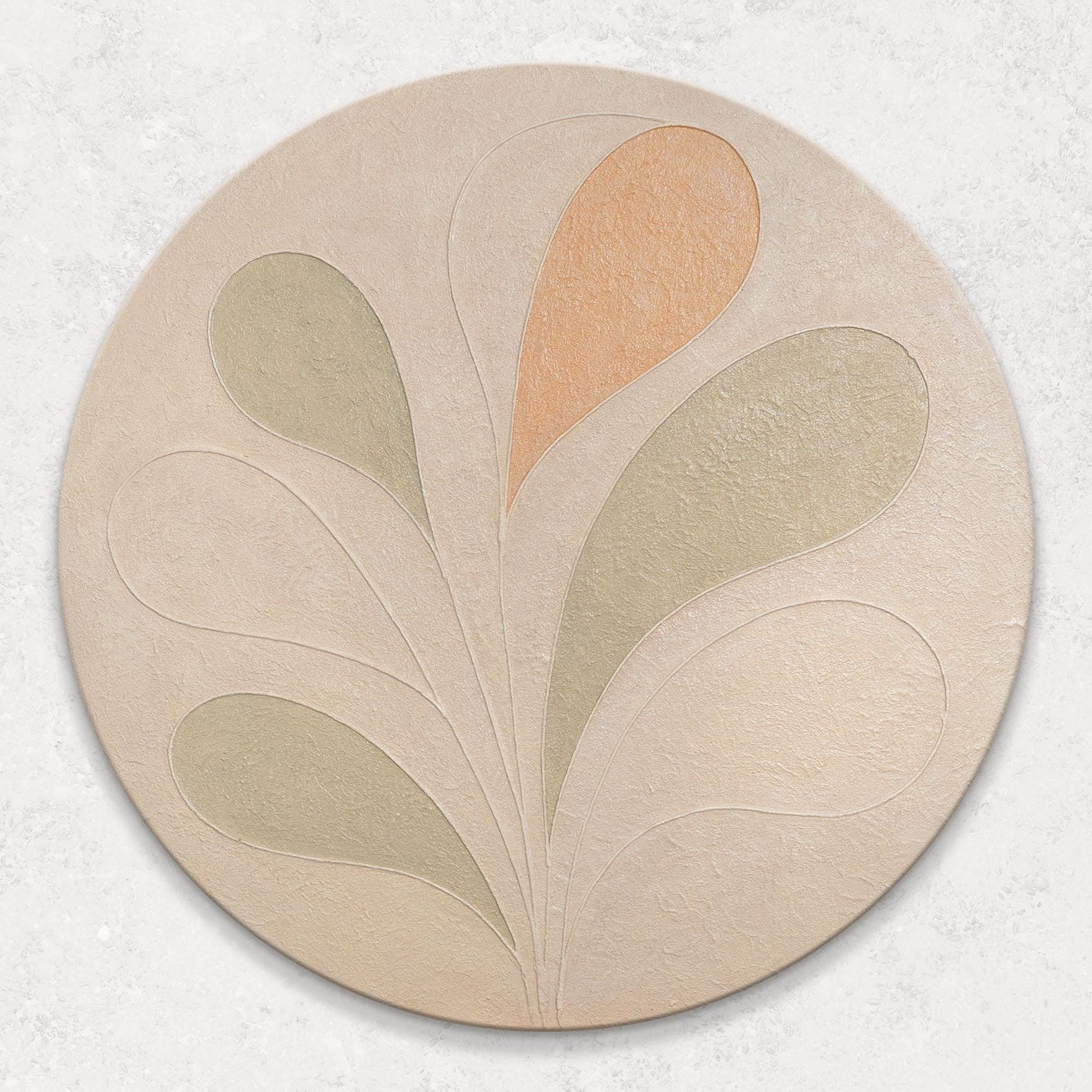 „Zarte Muster“ ist ein rundes, handgemaltes Acrylgemälde, das durch seine sanften Formen und feine Struktur besticht. Die dezenten Farbtöne aus Beige, Grün und Terrakotta fließen harmonisch ineinander und schaffen ein Gefühl von Leichtigkeit und Eleganz. Die reliefartige Oberfläche verleiht dem Werk Tiefe und unterstreicht seine handwerkliche Raffinesse.