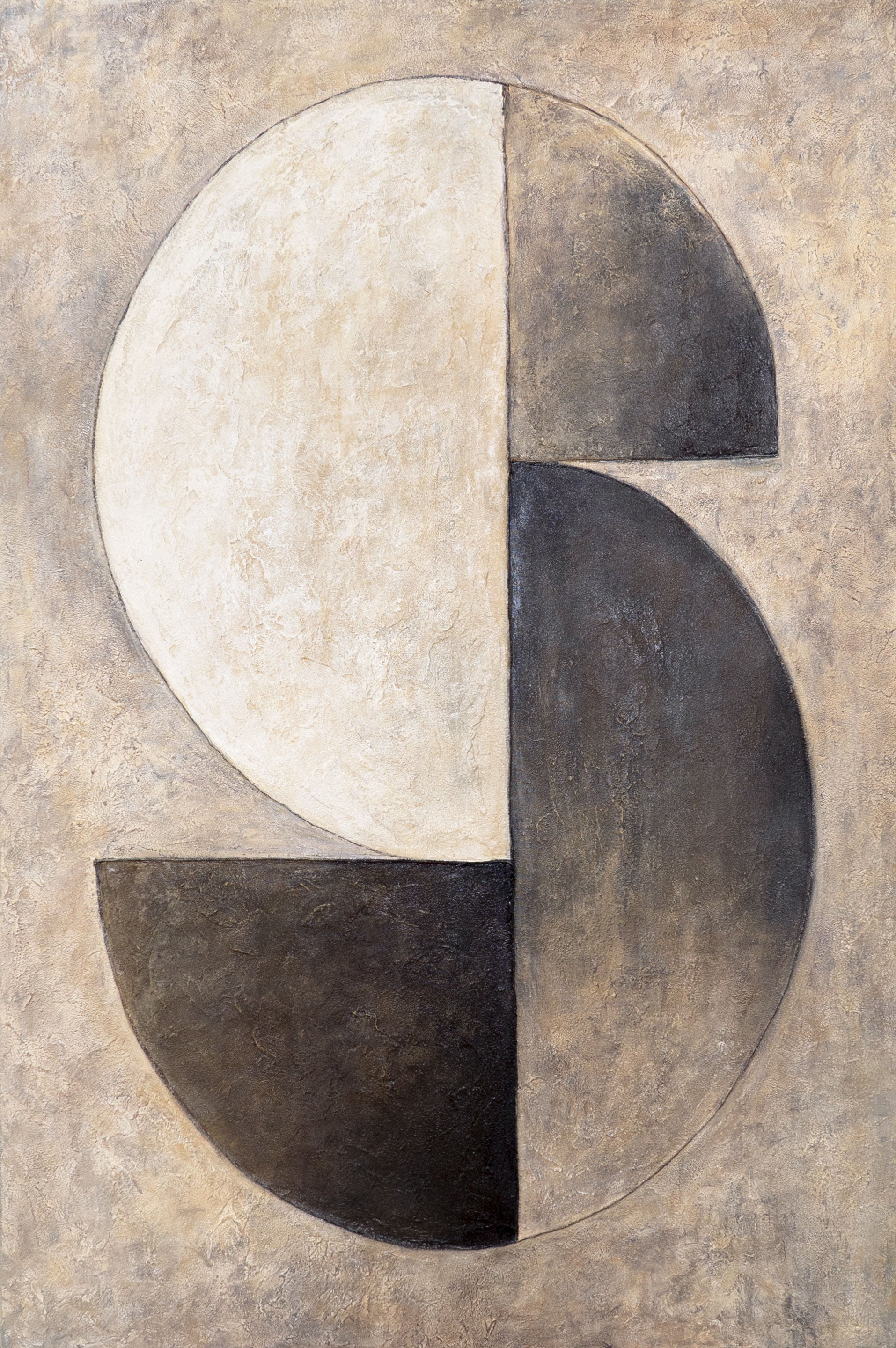 Struktur Gemälde Beige & Schwarz – Abstrakte Kunst auf Leinwand „Duett der Halbkreise“