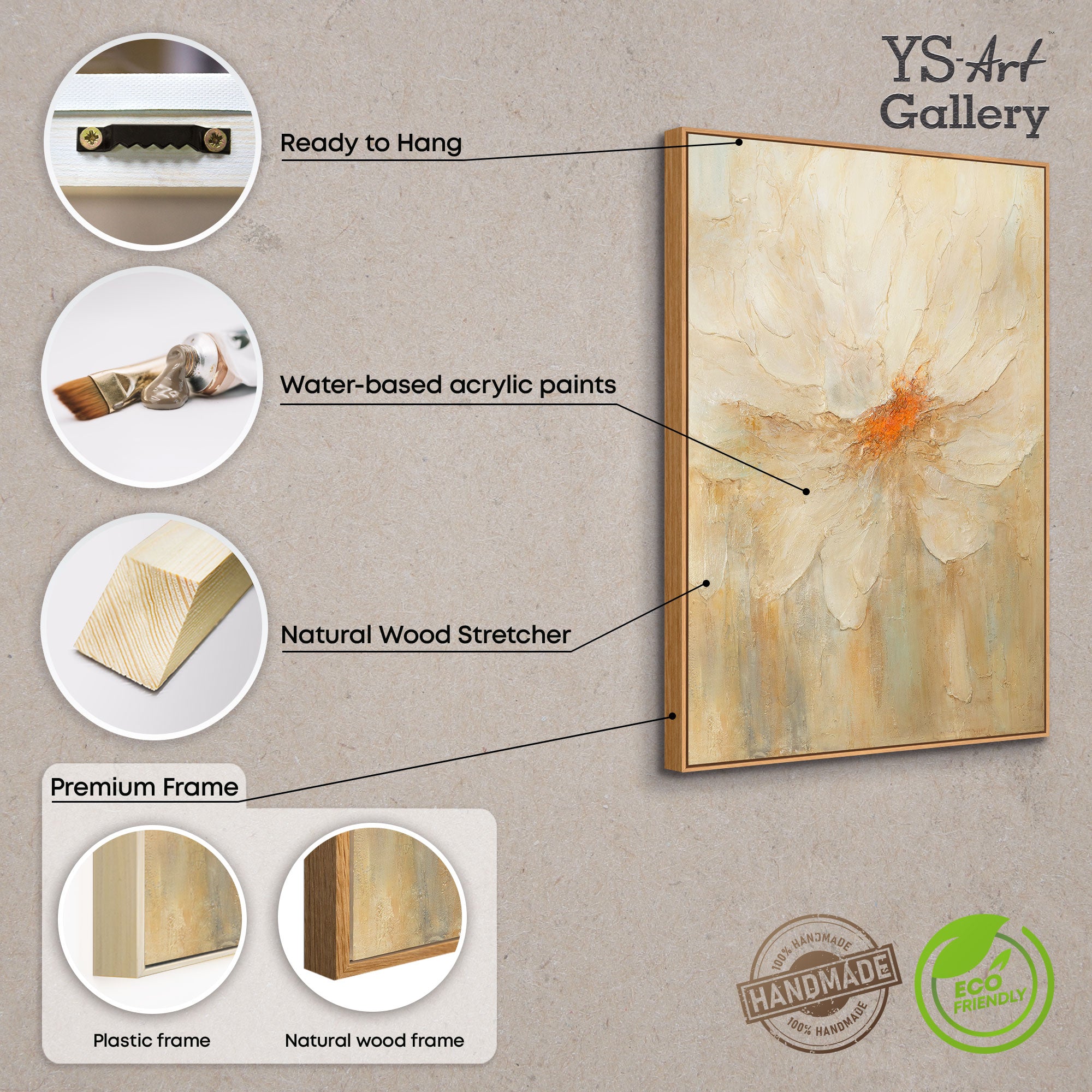 „Feuerstaub“ entfaltet sich wie ein stiller Moment voller Wärme und Leichtigkeit. Die weichen Blütenformen erscheinen fast schwebend auf einer sanften Oberfläche aus Beige- und Naturtönen, während strukturierte Farbaufträge dem Werk eine elegante Tiefe verleihen. Wenn Sie moderne Gemälde kaufen möchten, die eine beruhigende Atmosphäre schaffen, ist dieses handgemalte Gemälde die perfekte Wahl für anspruchsvolle Räumlichkeiten.